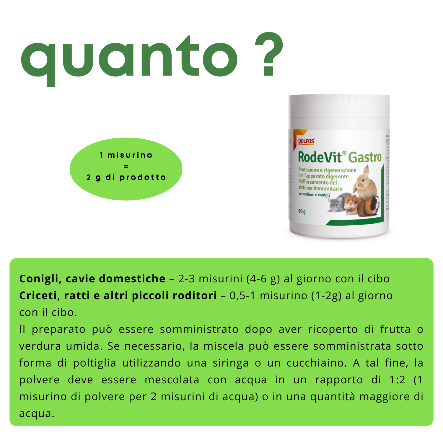 Criceti, ratti e altri piccoli roditori – 0,5-1 misurino (1-2g) al giorno con il cibo