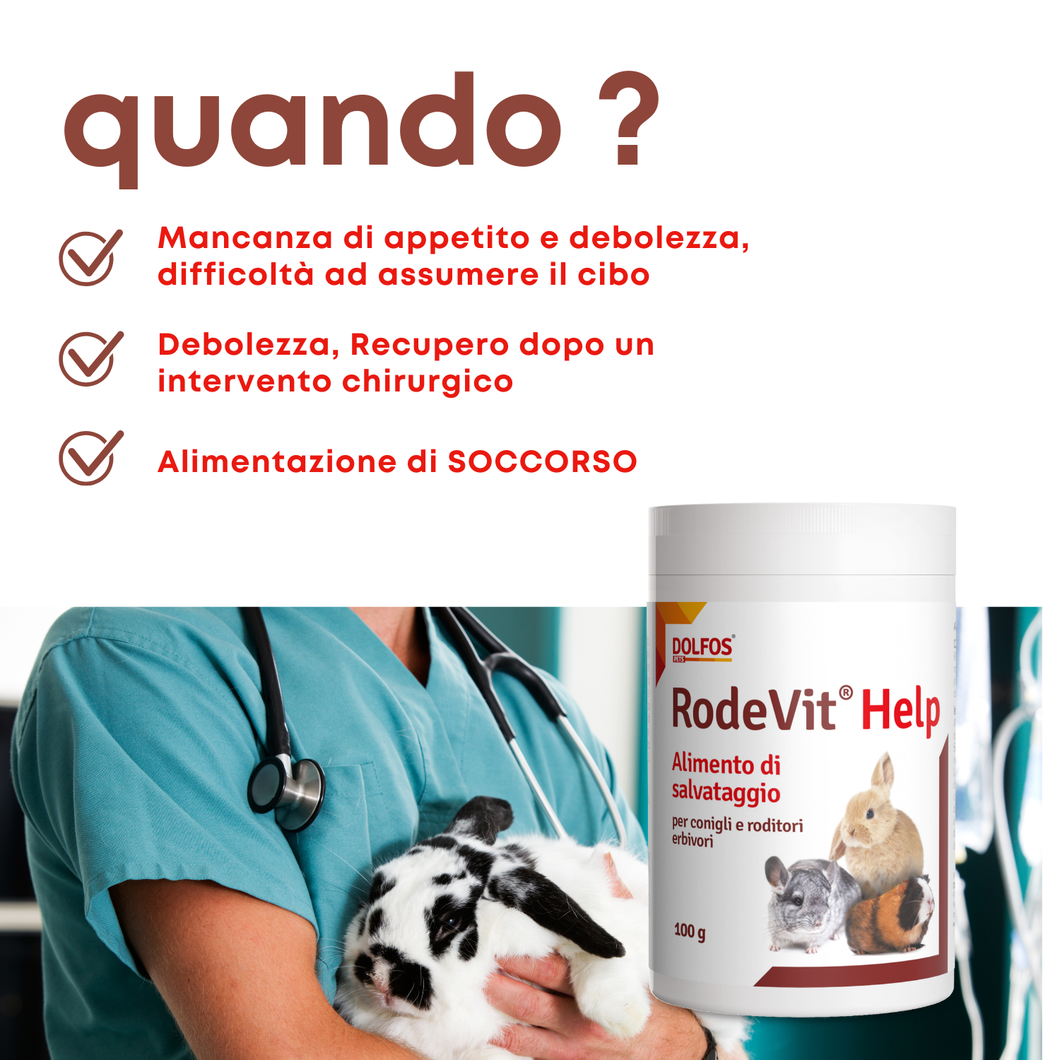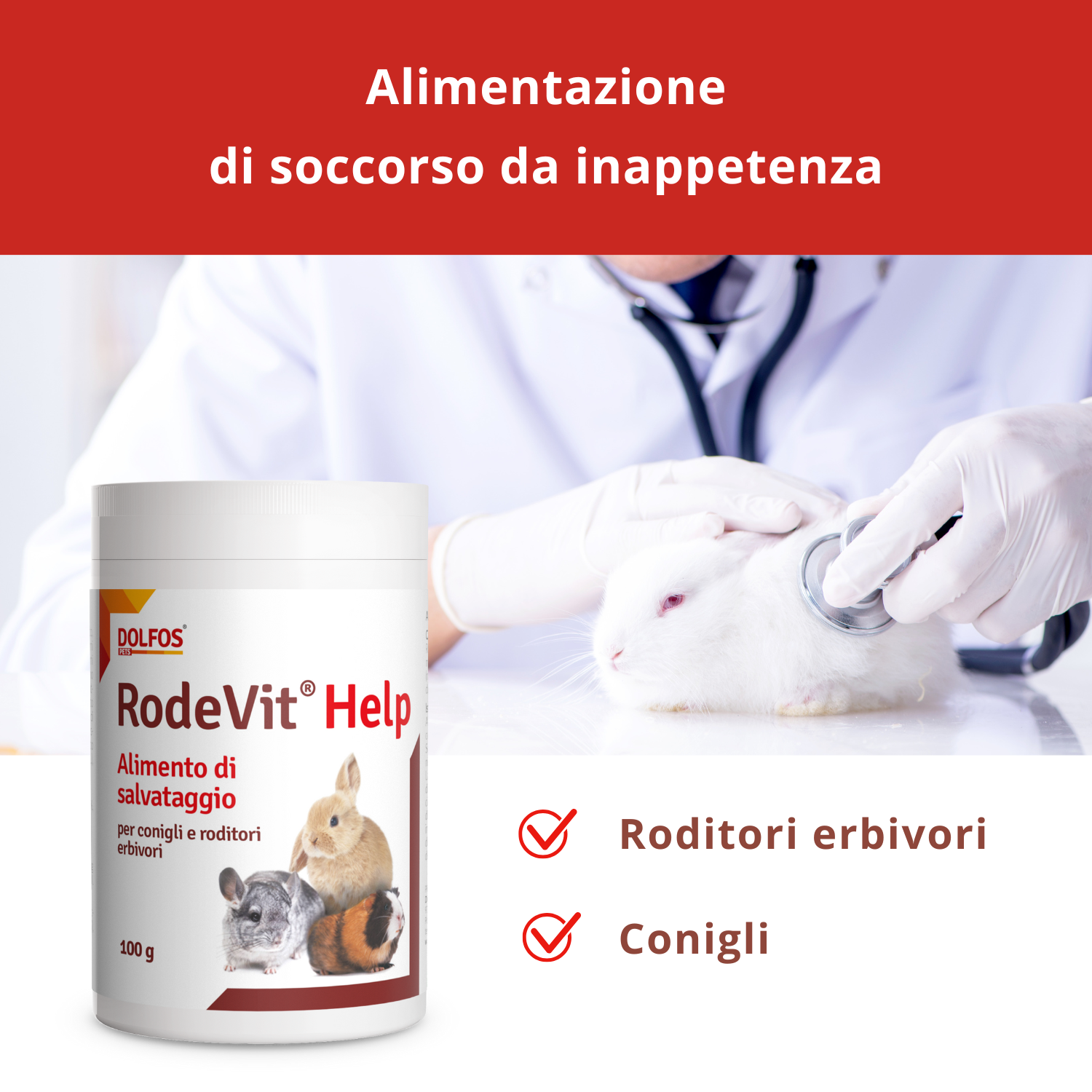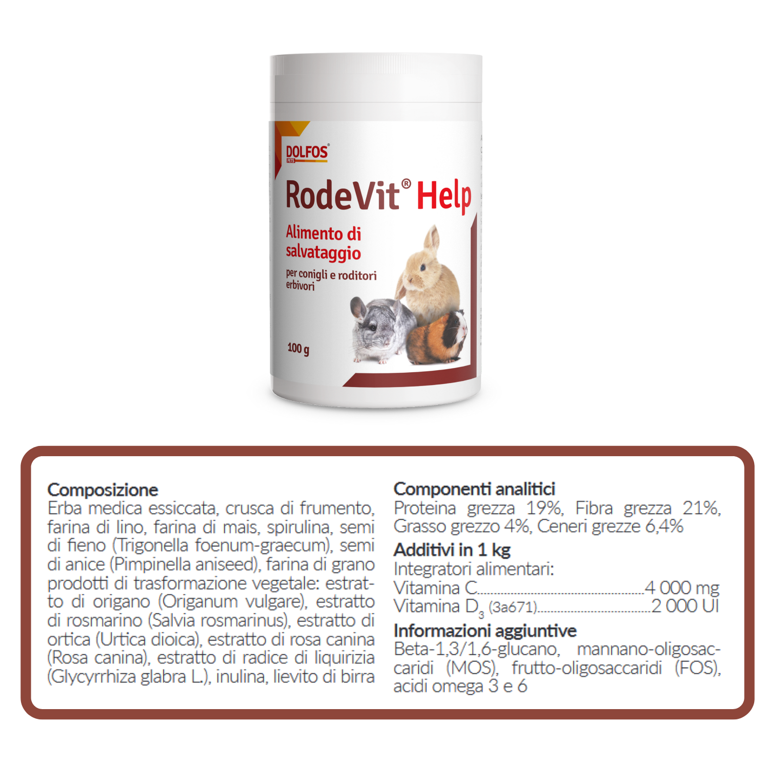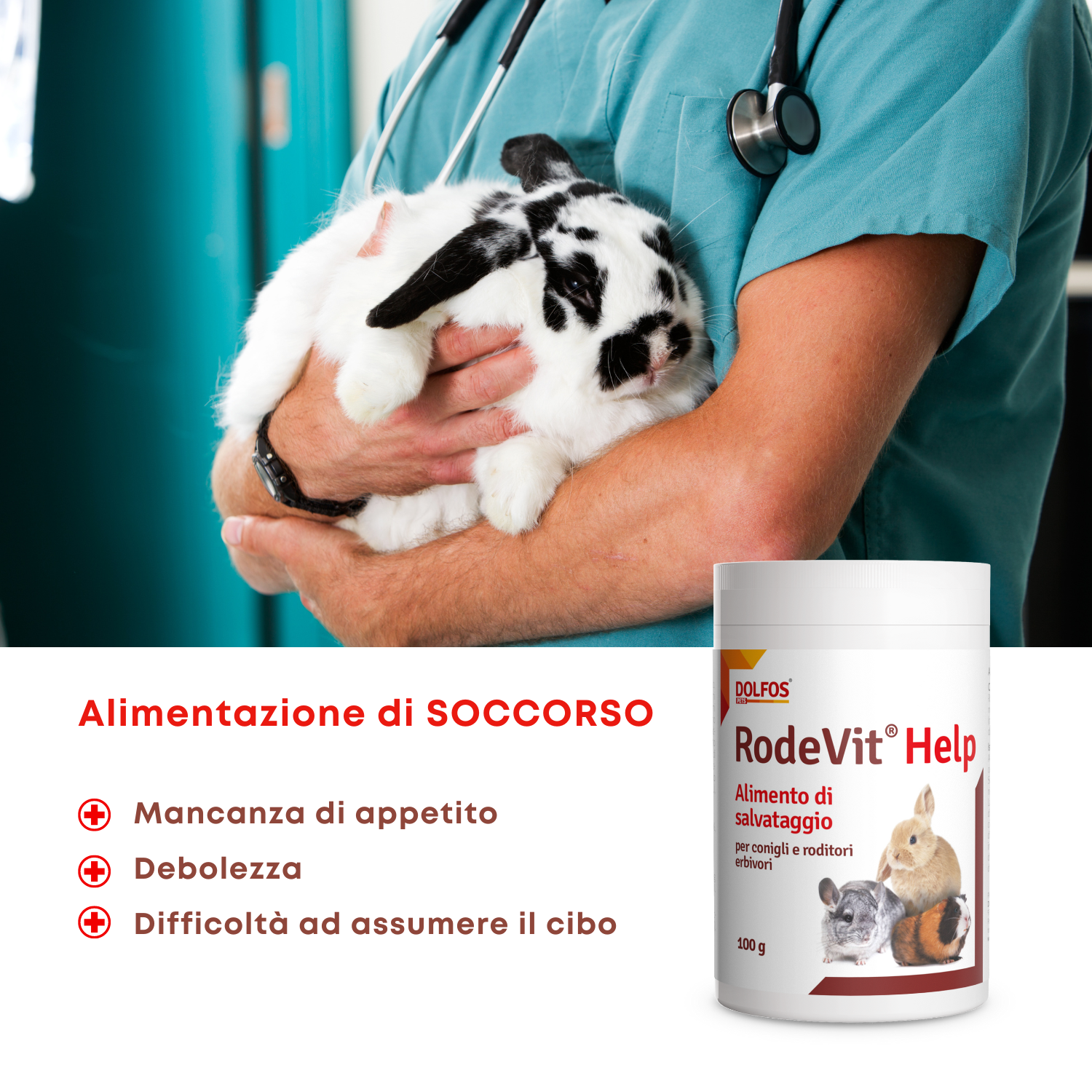 RodeVit Help è un alimento di soccorso per l'alimentazione temporanea di erbivori da compagnia (roditori, conigli) come supporto per l'inappetenza e durante la  convalescenza.